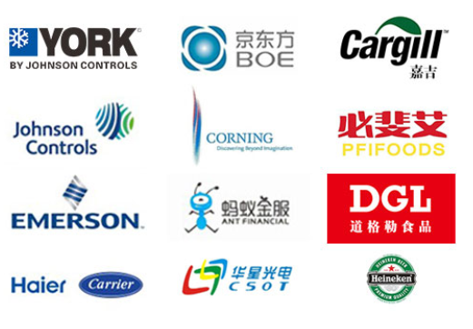 冷凍冷藏設備大型冷庫項目:   武漢中百物流冷庫(40000㎡)、蘇州、北京普洛斯大型物流庫(17000㎡)、沈陽佳德物流冷庫(20000㎡)、上海東航配餐物流庫(6000㎡)、杭州華商勾莊物流冷庫(24000㎡)、安徽安心蔬菜綠色食品冷庫(12000㎡)、武漢金宇冷庫(35000㎡)、必斐艾食品廠(14000㎡)、中國-東盟(百色)農產品交易中心冷庫物流工程(30000㎡)、遵鐵物流冷鏈物流區建設項目中心冷庫物流工程(16500㎡)、長沙云冷產業園冷庫物流工程(21000㎡)等;大型中央空調項目:   武漢康寧顯示玻璃廠廠房、武漢京東方模組廠房、武漢華星光電模組廠房、深圳華星光電模組廠房,杭州阿里巴巴辦公樓,舟山波音737機場辦公樓,南京江北能源站、上海金融大酒店等